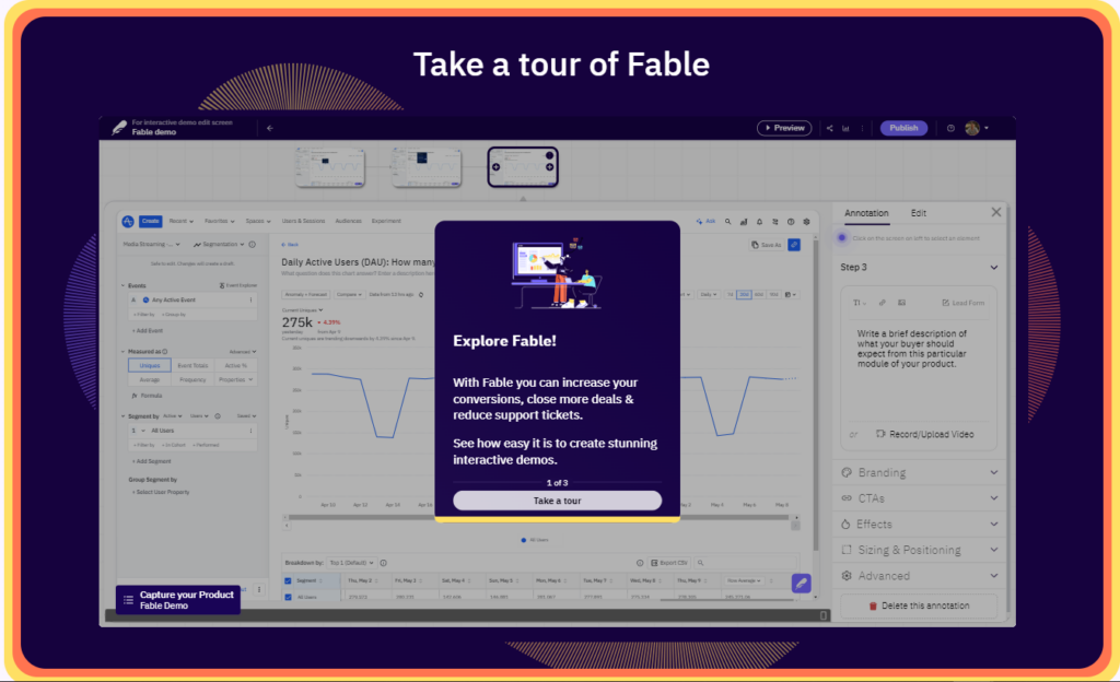 Fable has a lot of customizations available which helped us in getting the product tour to look exactly how we wanted.